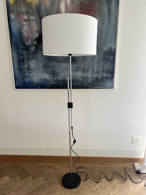 Diese Vintage-Stehleuchte aus den 70er Jahren besticht durch ihr verstellbares Design und den eleganten Chrom-Finish. Der Stoffschirm sorgt für ein...