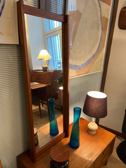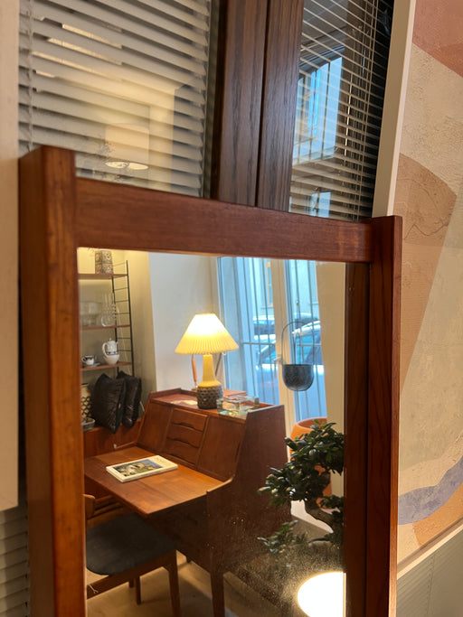 Beautiful and solid teak mirror from the 60s. It can either be leaned against the wall or mounted on the wall. H: 110 cm / W 41.5 cm / D: 5 cm